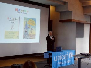 いわさきちひろさんのカレンダーや松本さんの絵本の頒布も行いユニセフ募金につなげました。